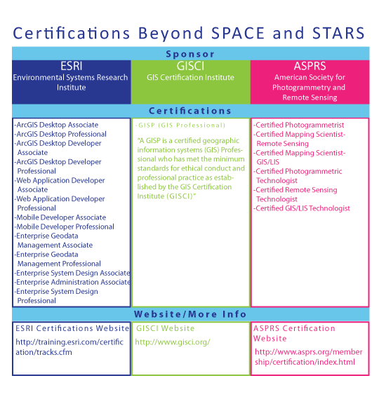 Basic to intermediate skills and processes essential to Geographic Information Systems, Remote Sensing, and GPS technologies. Process and Project Management essential to geospatial technologies and the larger information technology industry. Specific activities related to Green & Sustainability: Alternative Energies (National and local assessment of alternative resources - solar, wind, and biomass); Biofuels (Analysis of biofuel resources); Conservation Biology/Habitat Management (creating habitat boundaries/analyzing urban green space); Renewable Resources (Analyzing specific biomass crop potential); Watershed Management (Identifying likely watershed funding sources); Wetland Management (Analyzing methods for wetland mitigation); Carbon Mapping (Visualizing carbon output over time))